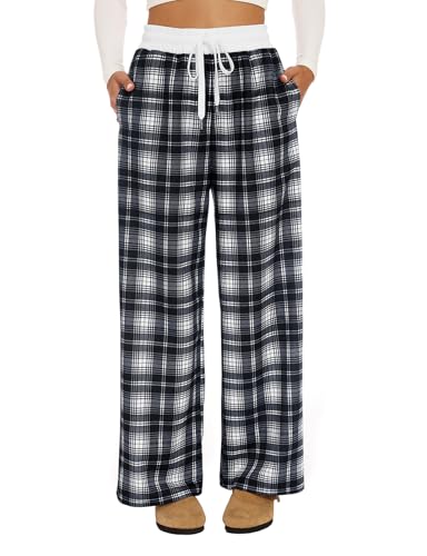 Akiooue Ladies Elasticated Waist Trousers Women's Wide Straight Leg Jogger Baggy Palazzo Tartan Halara Trousers Size 12-14 Pyjama Bottoms for Women UK