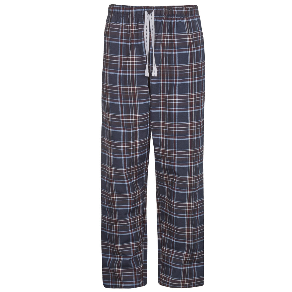 (Navy, Large) Mens Pyjama Bottoms Bed Pajama Pj Lounge Trousers Check Checked Tartan Cotton Blend Relaxed Fit Pockets Size S M L Xl Xxl