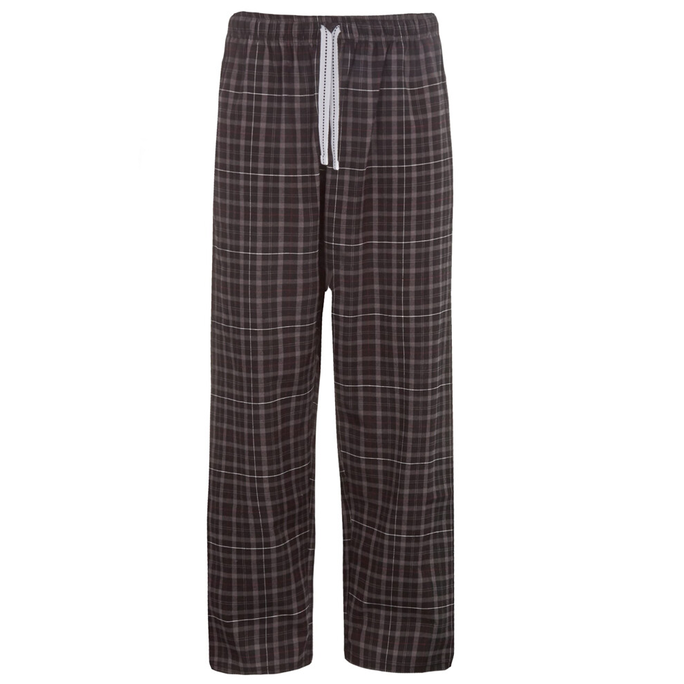 (Black, Medium) Mens Pyjama Bottoms Bed Pajama Pj Lounge Trousers Check Checked Tartan Cotton Blend Relaxed Fit Pockets Size S M L Xl Xxl
