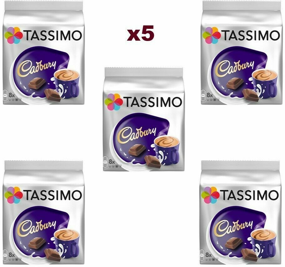 TASSIMO Cadbury Coffee Pods Hot Chocolate Pods T Discs 5 Pack 40 Coffee Capsules