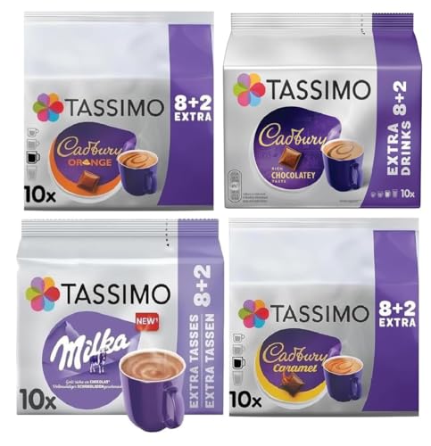 Tassimo Hot Chocolate lovers Variety Pack Capsules – Cadbury, Caramel, Orange & Milka - 40 T-Discs (4 x 10 Pods)