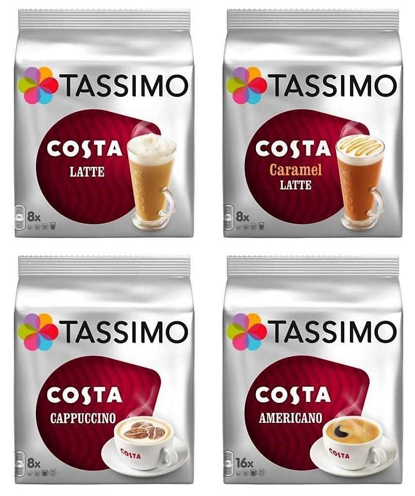 Tassimo Costa 4 Pack - Latte Caramel Cappuccino Americano 64 T Discs - 40 Cup