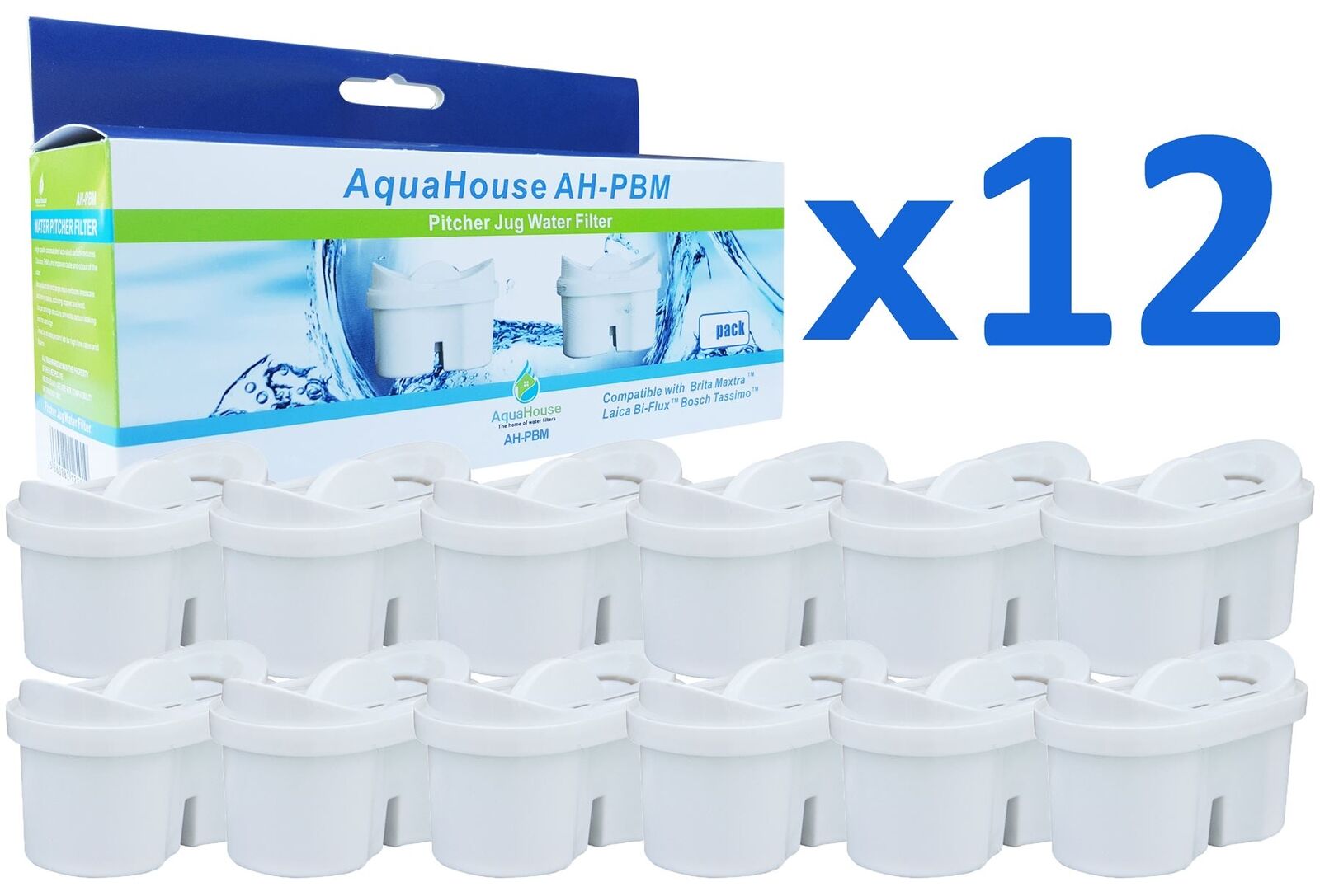 12 AquaHouse Water Filter Cartridge Compatible for Bosch Tassimo
