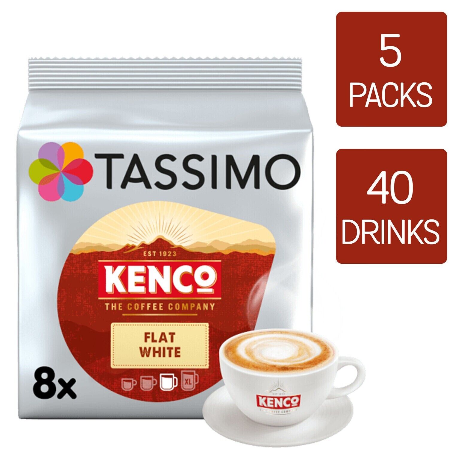 Tassimo Kenco Flat White Coffee Pods x8 (Pack of 5, Total 40 Drinks)