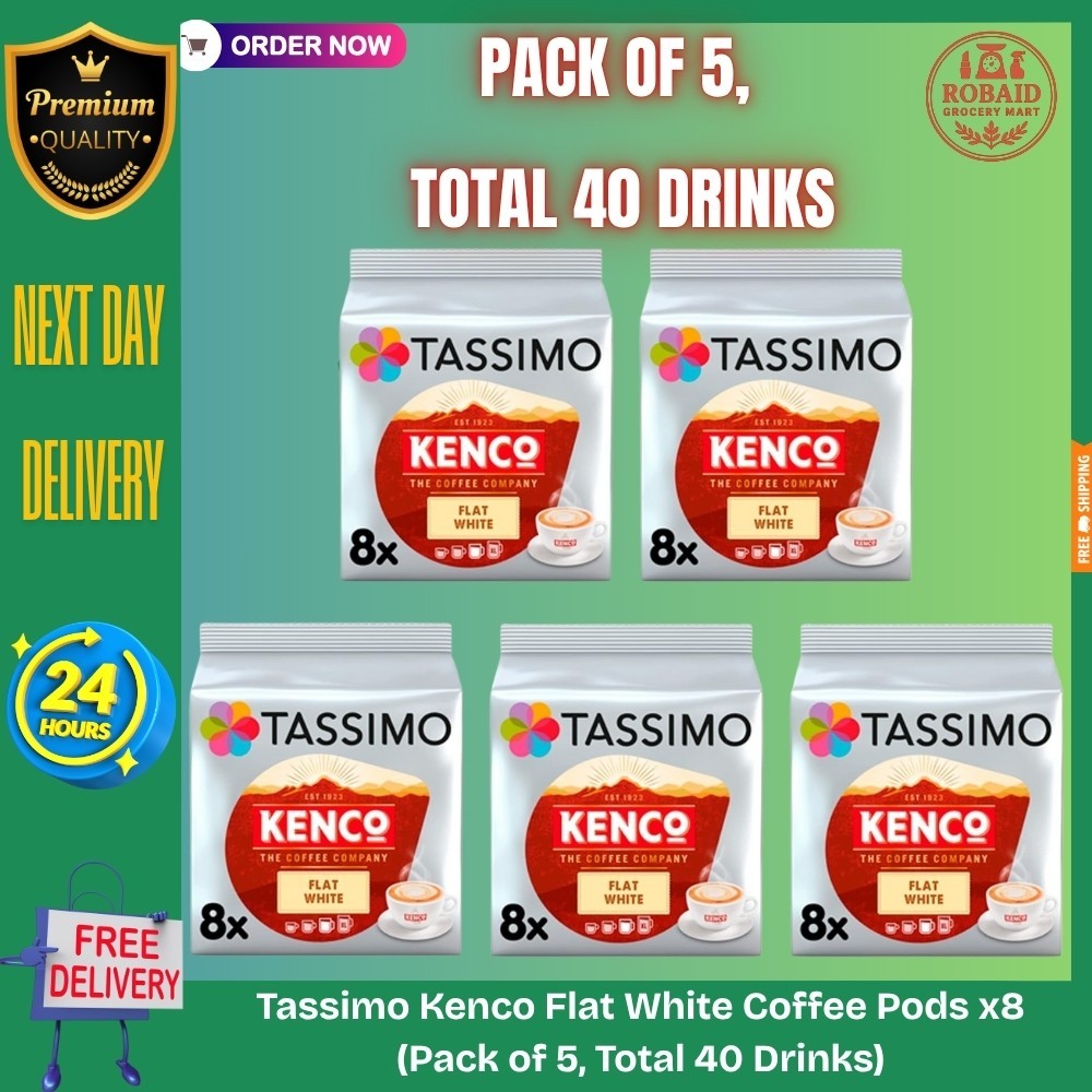 Tassimo Coffee Pods Kenco Flat White 5 x 8 Drinks (Total 40 Drinks)