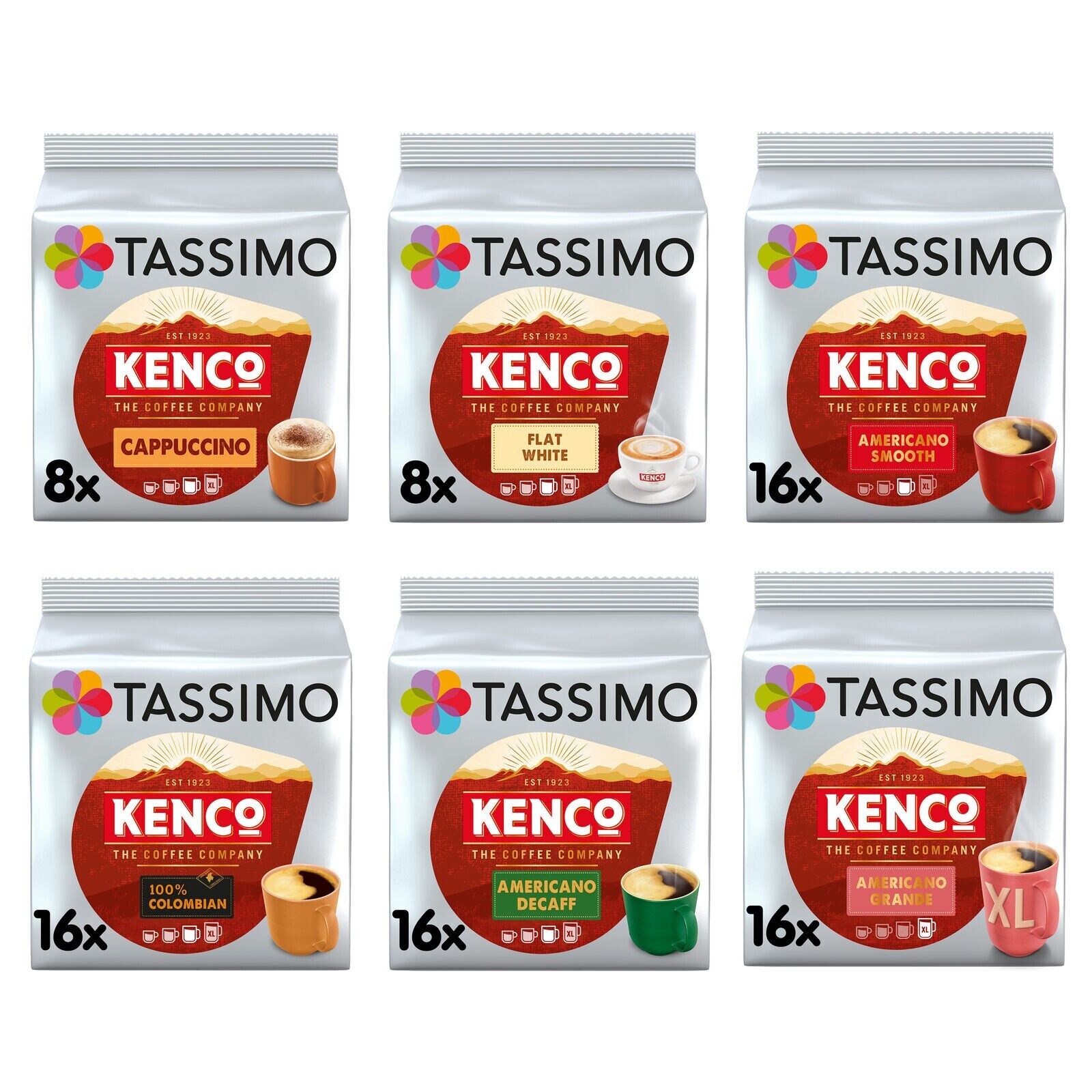 Tassimo Kenco Americano, Cappuccino, Flat White Bundle (Total of 80 Coffee Pods)