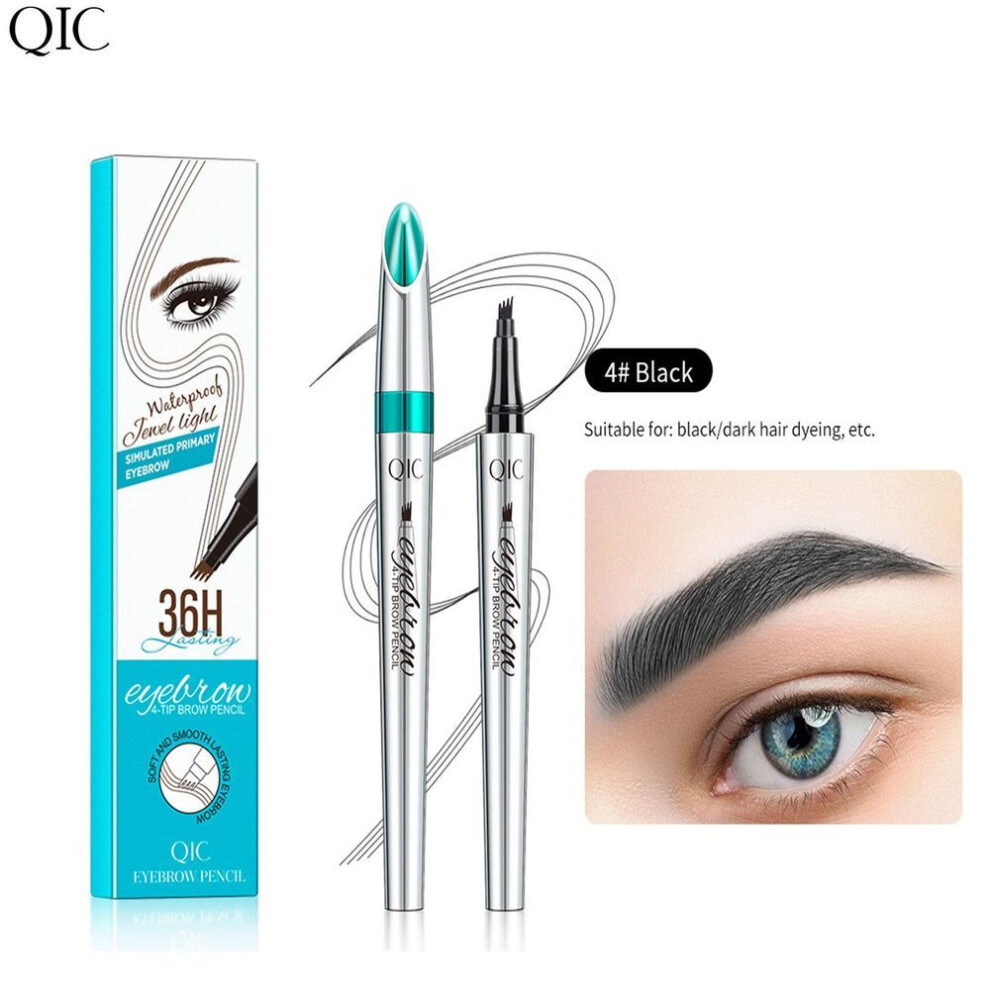 Waterproof Microblading Eyebrow Pen with 4Fork Tip, LongLasting Smudgeproof Brow Tattoo Pencil Black
