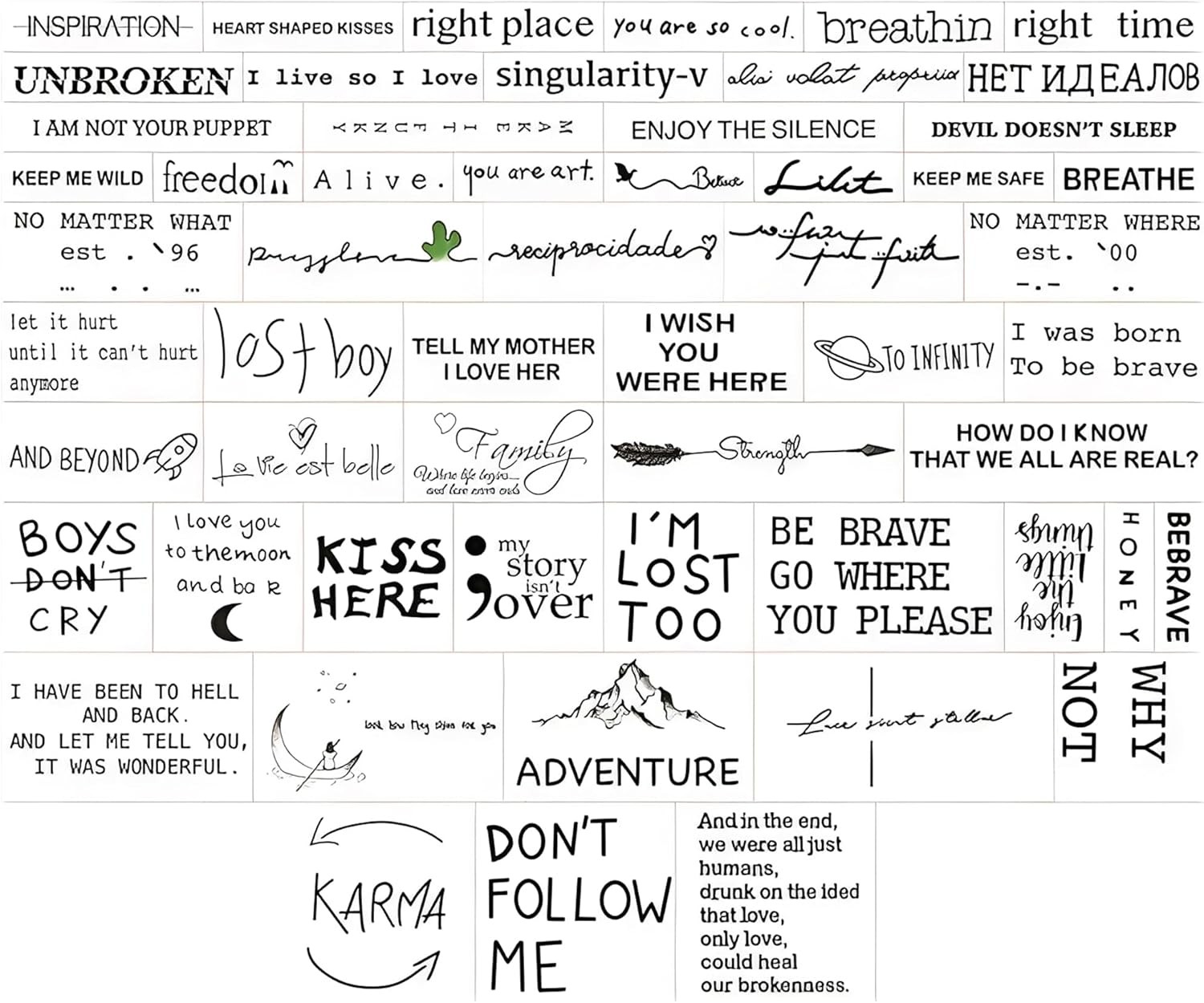 56pcs Cute Quotes Words Tiny Temporary Tattoos for Women and Men, Minimalist Ta