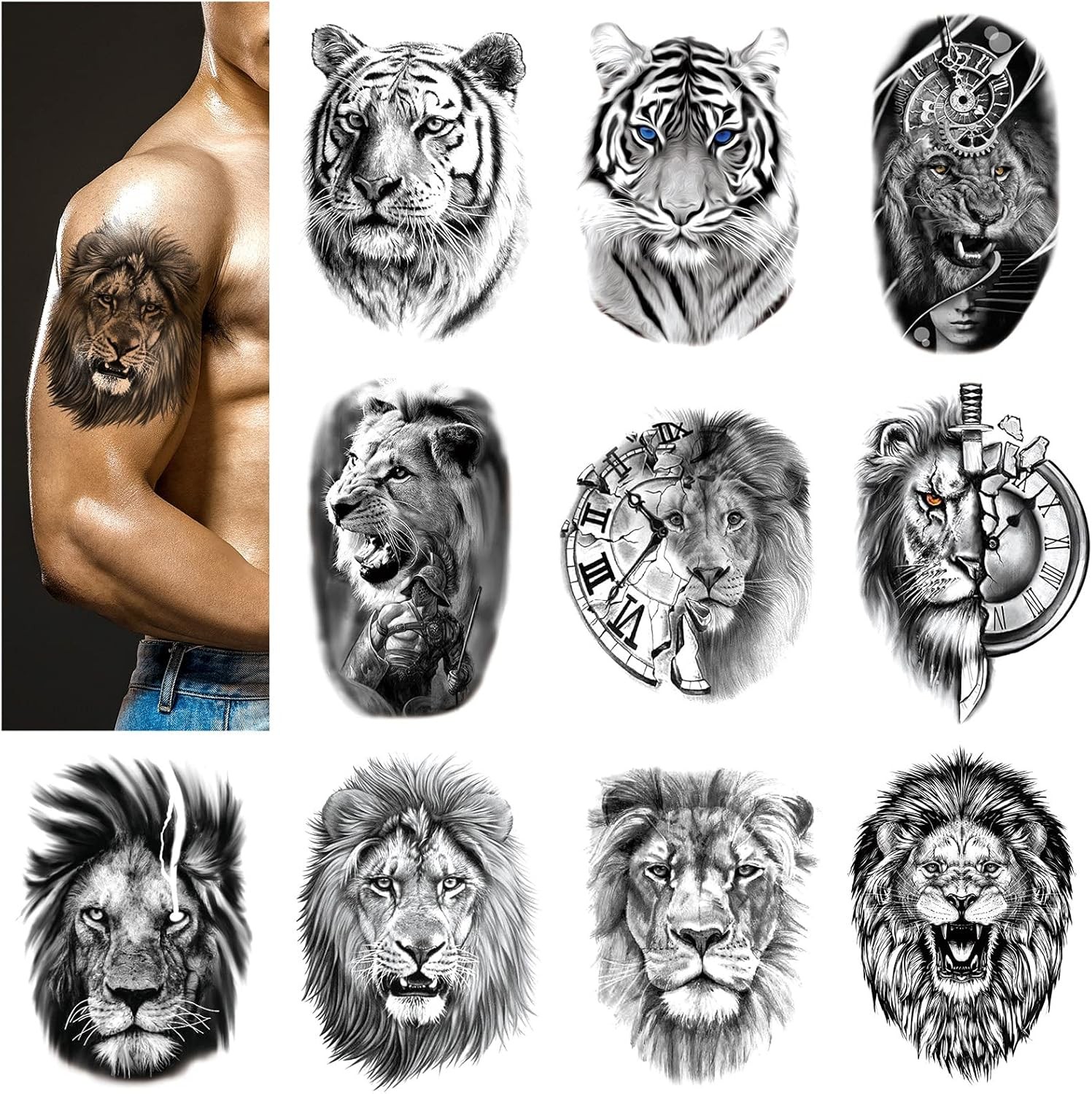 Temporary Tattoos for Adults Men - Large Tiger Lion Fake Tattoo Stickers Kit fo