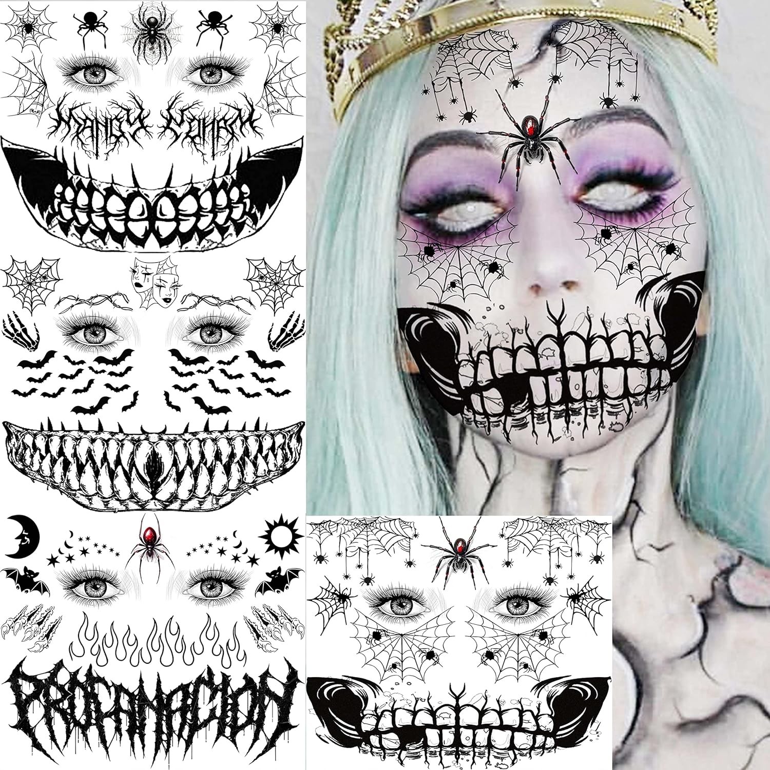 ENYACOS 6 Sheets Halloween Scary Face Tattoos For Men And Women,Skeleton Mouth