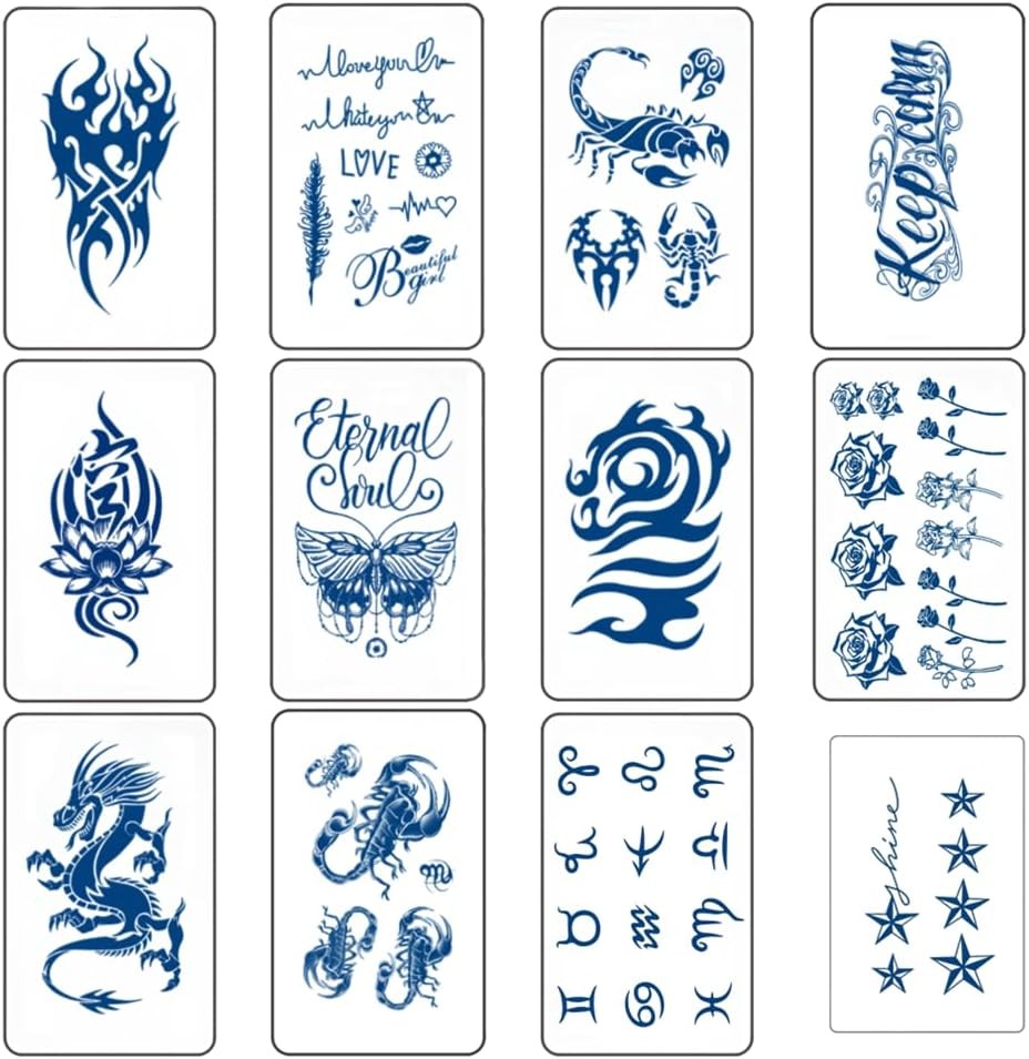 12 Sheets Semi Permanent Temporary Tattoos for Women and Men 2 Weeks Long-lasti