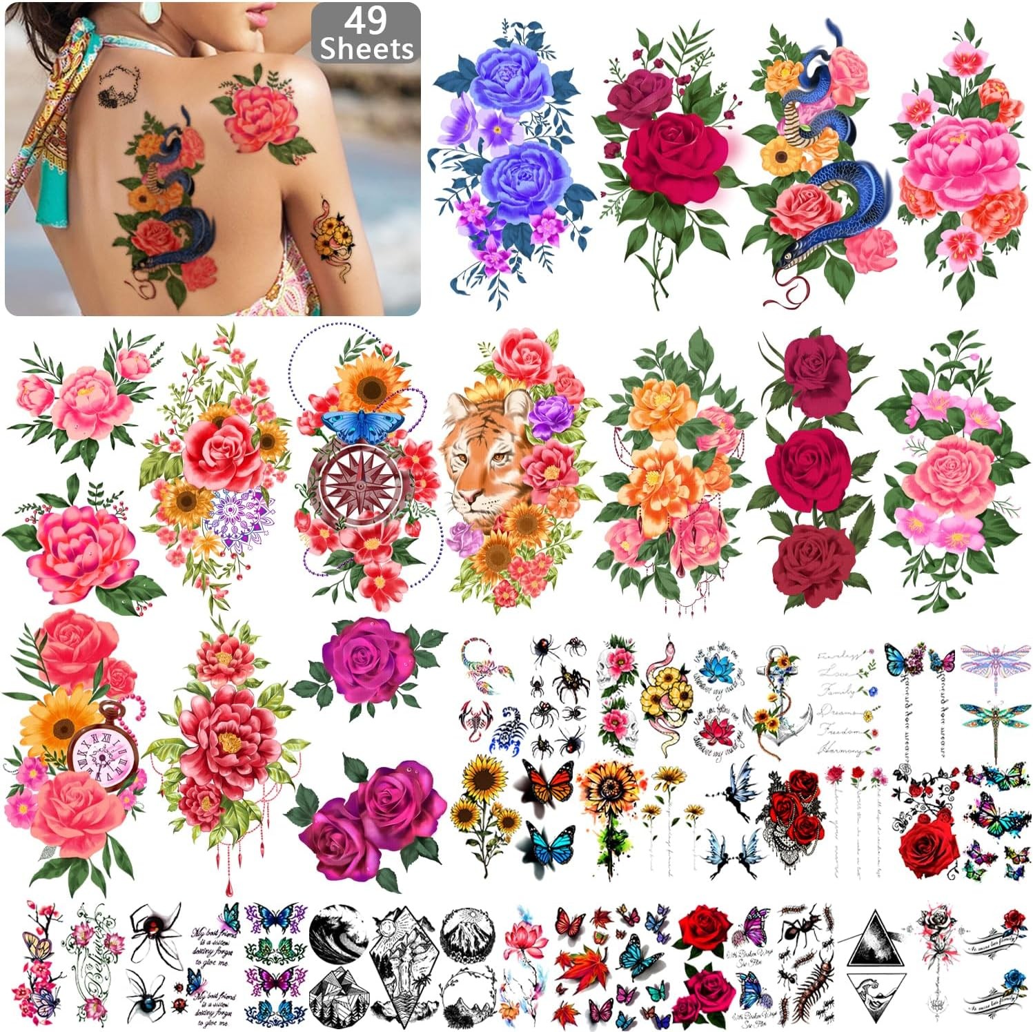 49 Sheets Temporary Tattoos for Women and Men 3D Extra Large Waterproof Sexy Fl