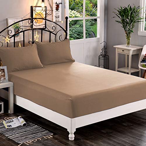 Hearth & Harbor Fits Mattress up to 21", Double Brushed Bedding Sheets & Pillowcases, Microfiber, Taupe, Split King Size