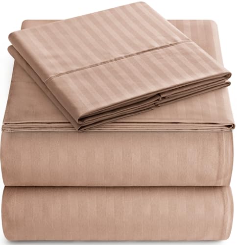 Elaine Karen Queen Italian Prestige Collection Striped Bed Sheet Set – 1800 Luxury Soft Microfiber Deep Pocket 4-Piece Bedding Set - Wrinkle, Stain, Fade Resistant - Taupe