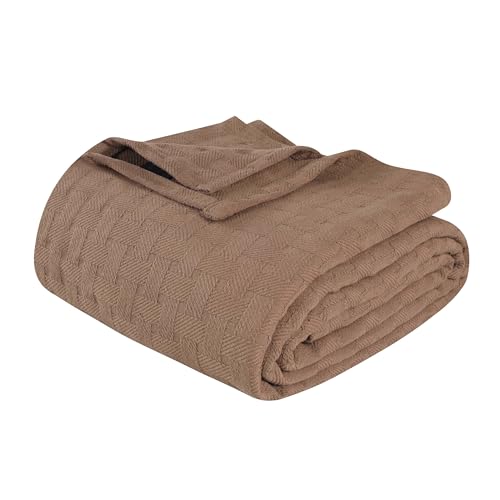 Superior 100% Cotton All-Season Blanket, Basket Weave Design, Soft, Comfy Cover for Bed, Bedding, Bedroom, Couch Throw, Lounging, Modern Boho Medium Weighted Blankets - King, Taupe