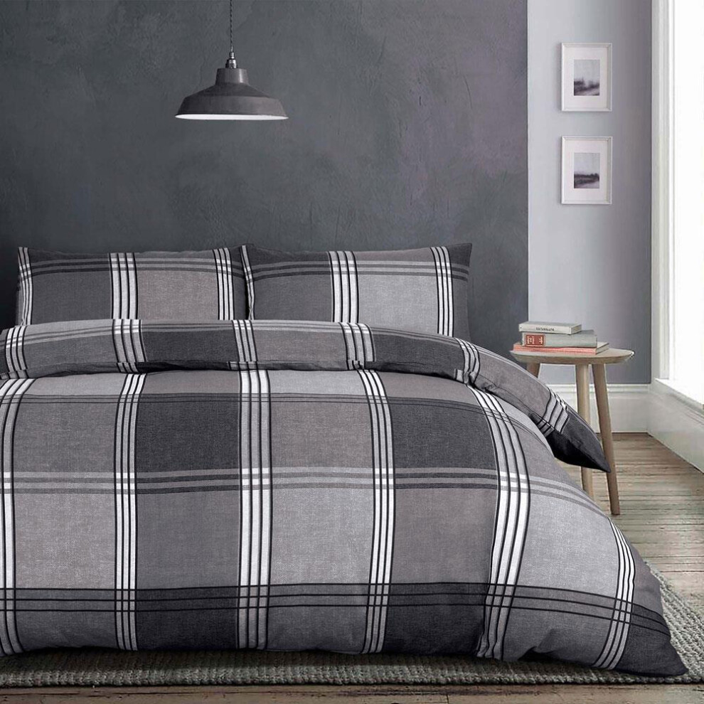 (Single, Taupe Grey) Duvet set check quilt cover pillow cases bedding