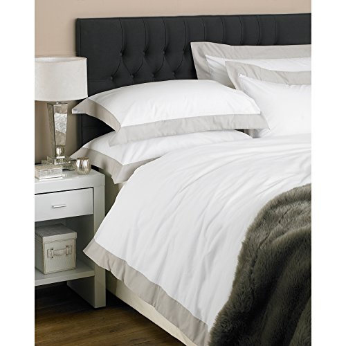 Harvard 100% Cotton Quilt Duvet Cover Set Bedding 200 Thread Count Percale, White/Taupe, Super-King