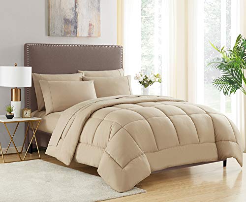 Comfort Spaces Queen Comforter Set - Taupe Bedding for All Season, Ultra Soft 3 Pieces Reversible Comforter with 2 Matching Shams,Easy Care, Machine Washable, Full/Queen