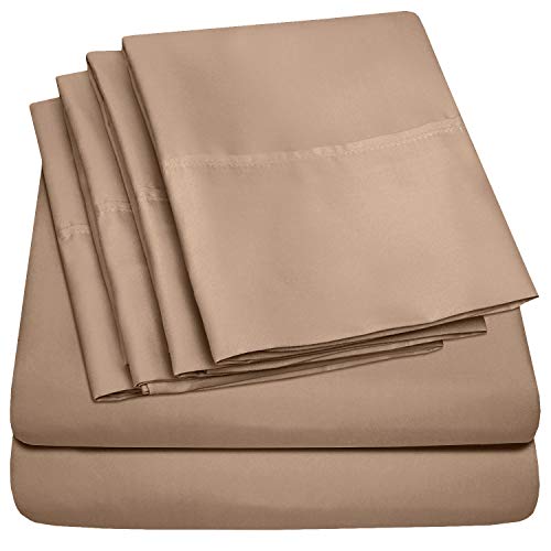 Queen Sheets Taupe - 6 Piece 1500 Supreme Collection Fine Brushed Microfiber Deep Pocket Queen Sheet Set Bedding - 2 Extra Pillow Cases, Great Value, Queen, Taupe