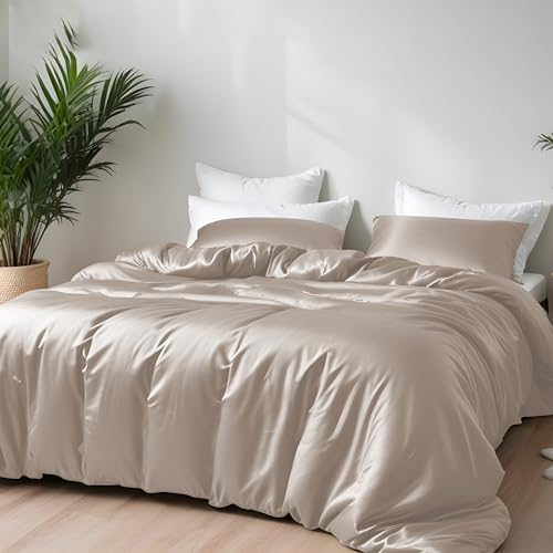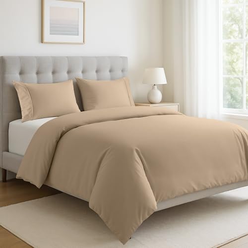 AMWAN Taupe Duvet Cover Twin Size - Soft Khaki Tan Modern Style 3-Piece Comforter Cover Set With Zipper Closure - Boho Bedding Set (68"x86") With 2 Pillowcases