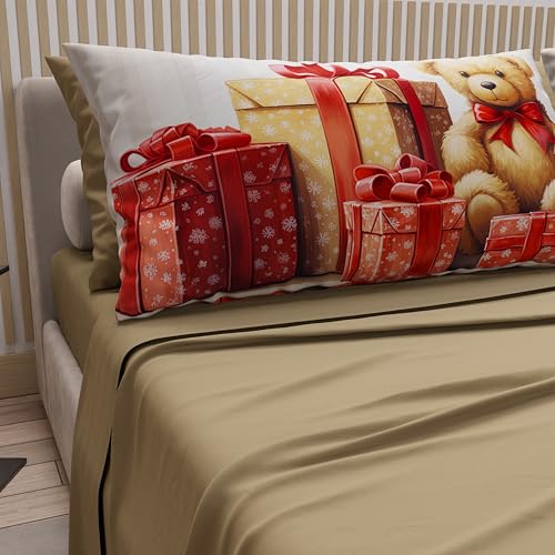 PETTI Artigiani Italiani Cotton Sheets with Pillowcases Digital Print Christmas Bedding Set Double Christmas Teddy Bear 02 Taupe 100% Made in Italy