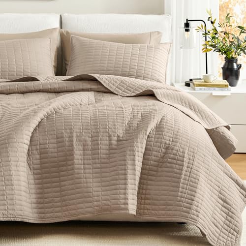 Comfort Spaces All Season, Lightweight, Coverlet Bedspread Bedding, Matching Shams, Fabric, Taupe, Quilt King/Cal King(104"x90")