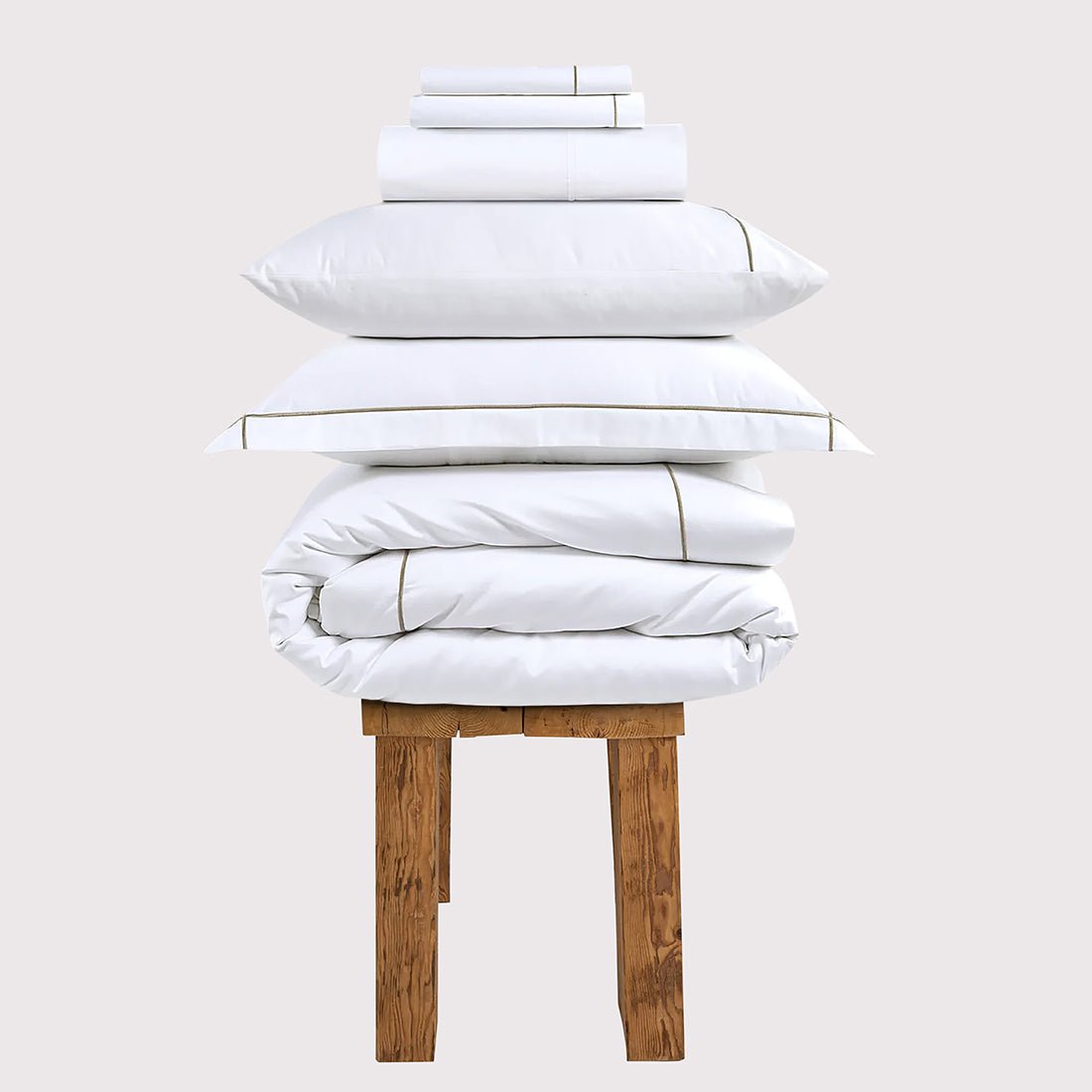 300 Thread Count Percale Viscount of Bliss Bedding Set - Simply Taupe with Brilliant White Accent, Super King