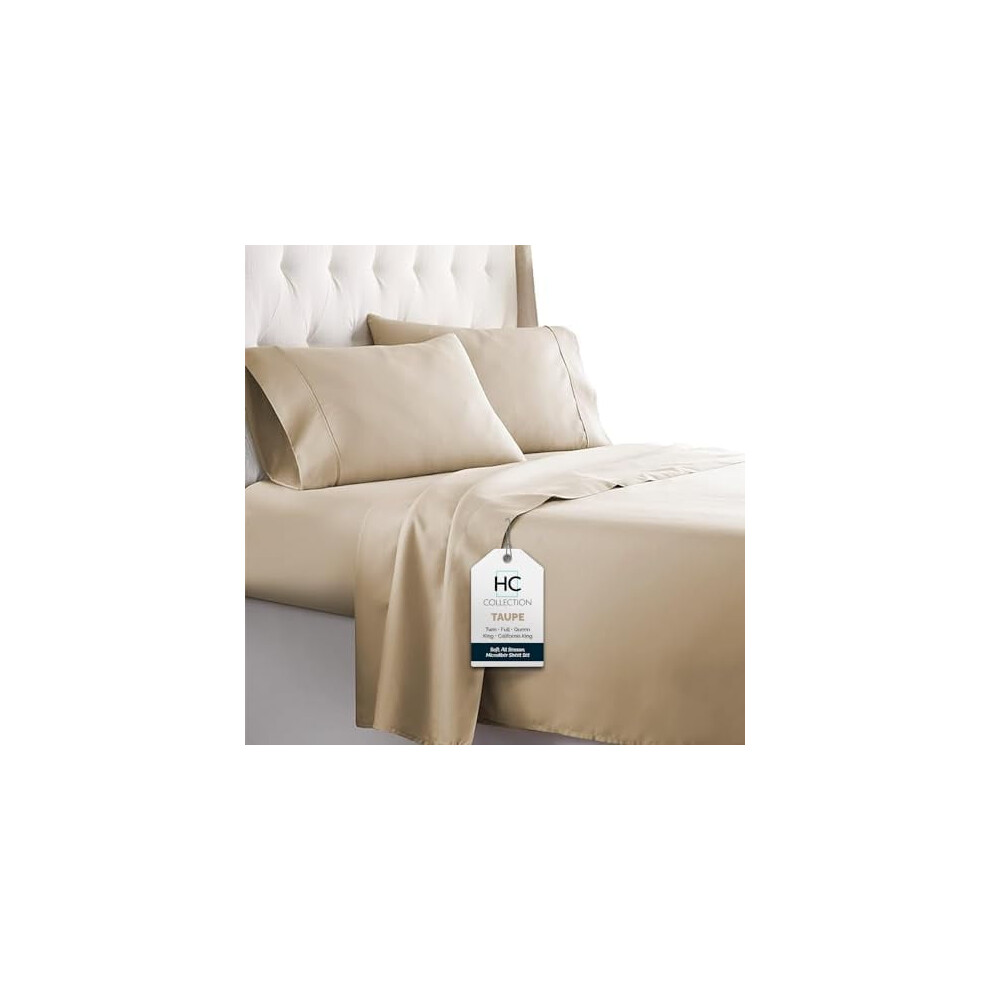 Royal Hotel Bedding 650-Thread-Count Bed Sheets - Wrinkle Free Sheets - Deep Pocket Cotton Blend Bed Sheets Hypoallergenic 4 Piece - Full - Taupe