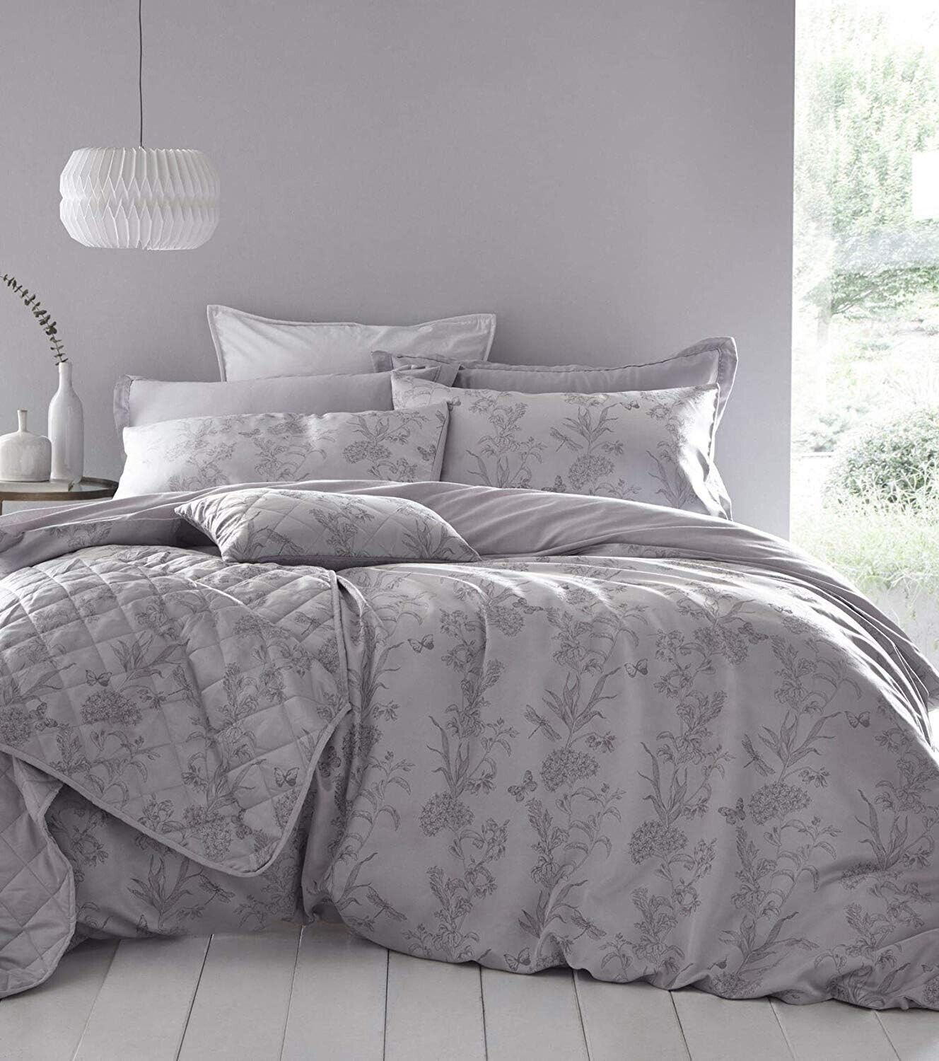 Single Bed Duvet Cover Set Arboretum Lilac Taupe Reversible Floral Bedding Set