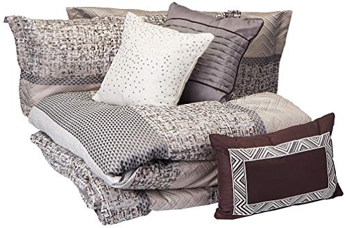 Madison Park All Season Down Alternative Bedding, Matching Bedskirt, Decorative Pillows, Polyester, Striped Grey/Taupe, California-King