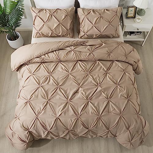 Andency Taupe Comforter Set Full, 3 Pieces Pinch Pleat Bedding Comforters & Sets, Soft Lightweight All Season Bed Set for Kids, Adults(79x90Inch)