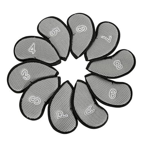 PTGIORE 10 pcs/Set Meshy Golf Iron Headcovers Head Covers Set for Most Irons Taylormade Callaway Mizuno Cobra Ping,Gray