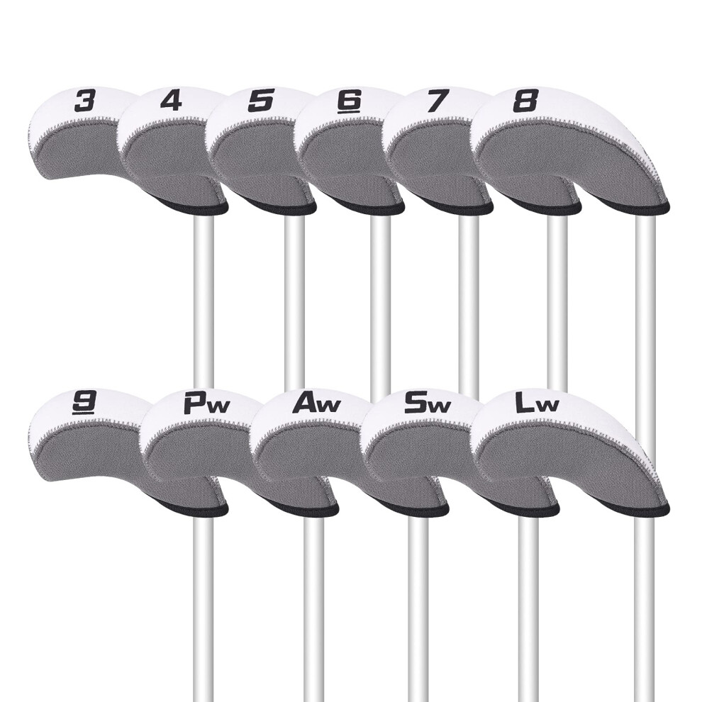 11pcs/Set Neoprene Iron Headcover Set with Large No. for All Brands Callaway,Ping,Taylormade,Cobra Etc. (Grey & White)