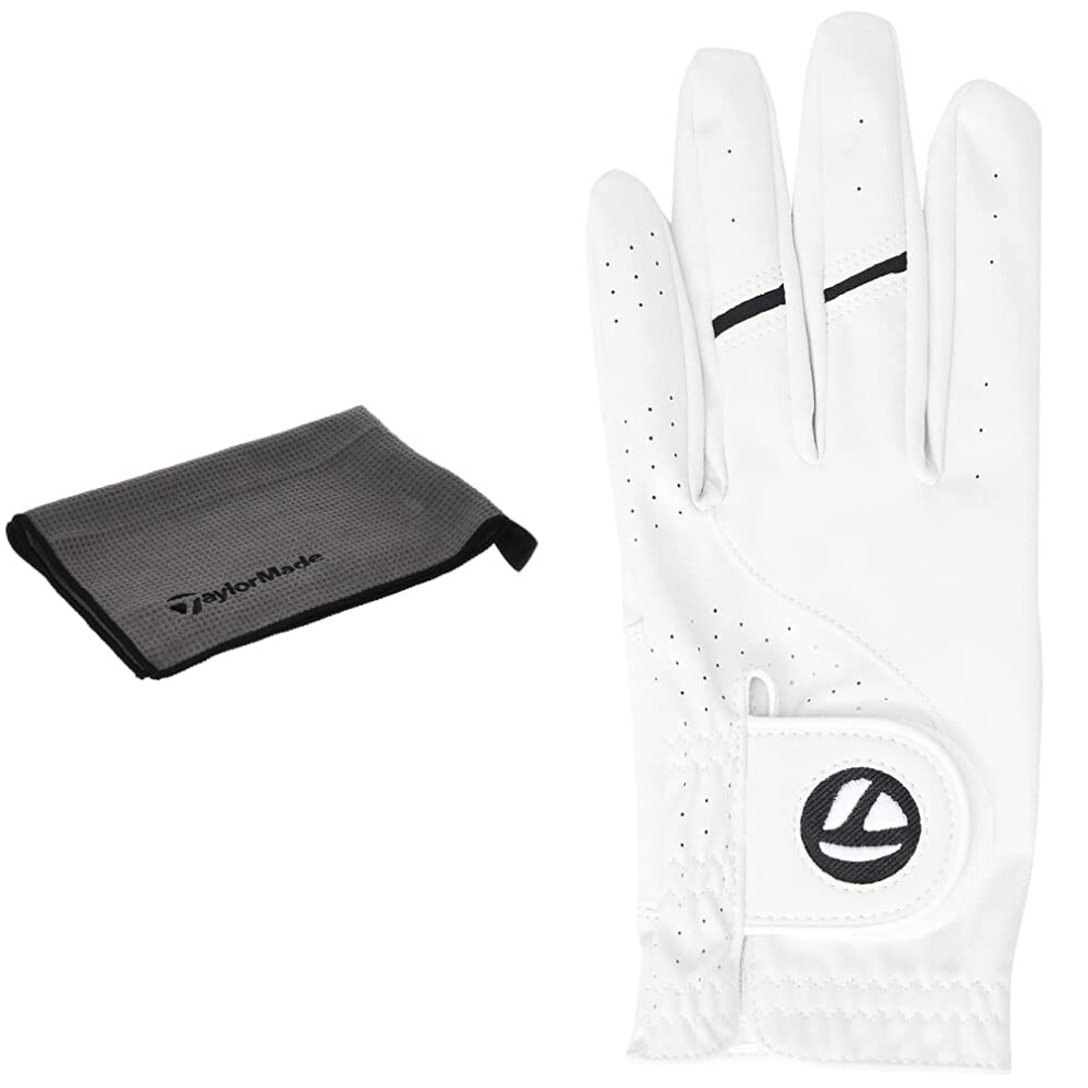 TaylorMade Men's Stratus Tech Golf Glove (2 Pack), White, Medium/Large & Cart Towel