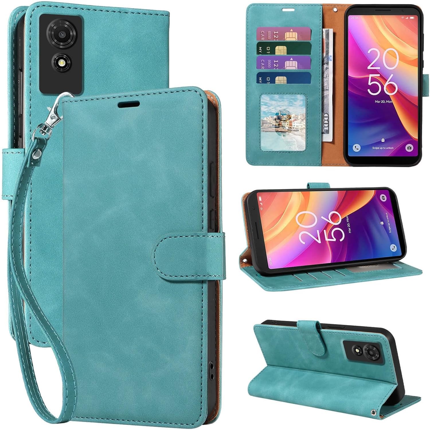 TCL 501 Phone Case Wallet â Leather Cover with Magnetic Closure, Card Slot, Shockproof Protection, Lake Blue