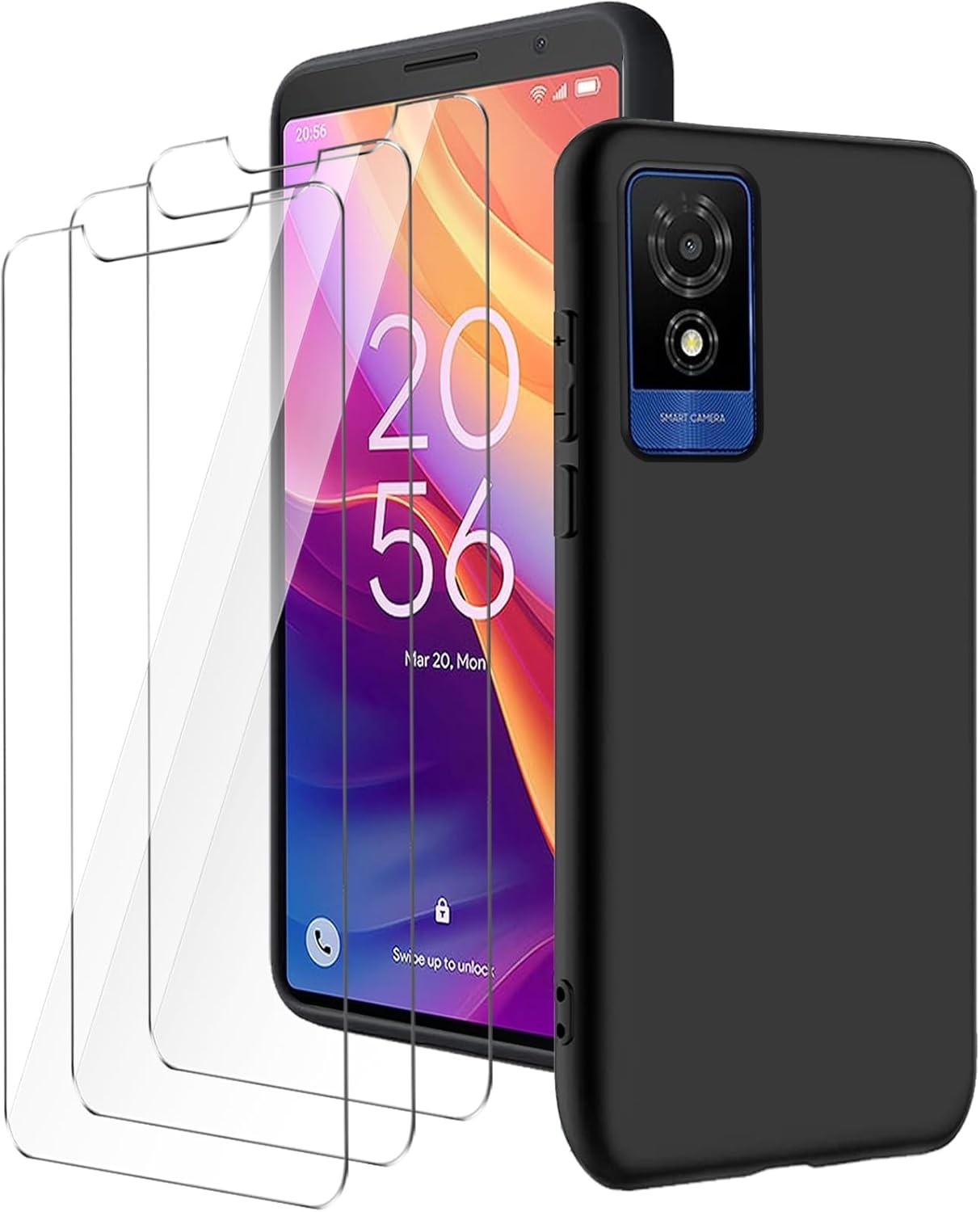 LYZXMY case for TCL 501 (6.0") Black mobile phone case + 3 pieces tempered glas