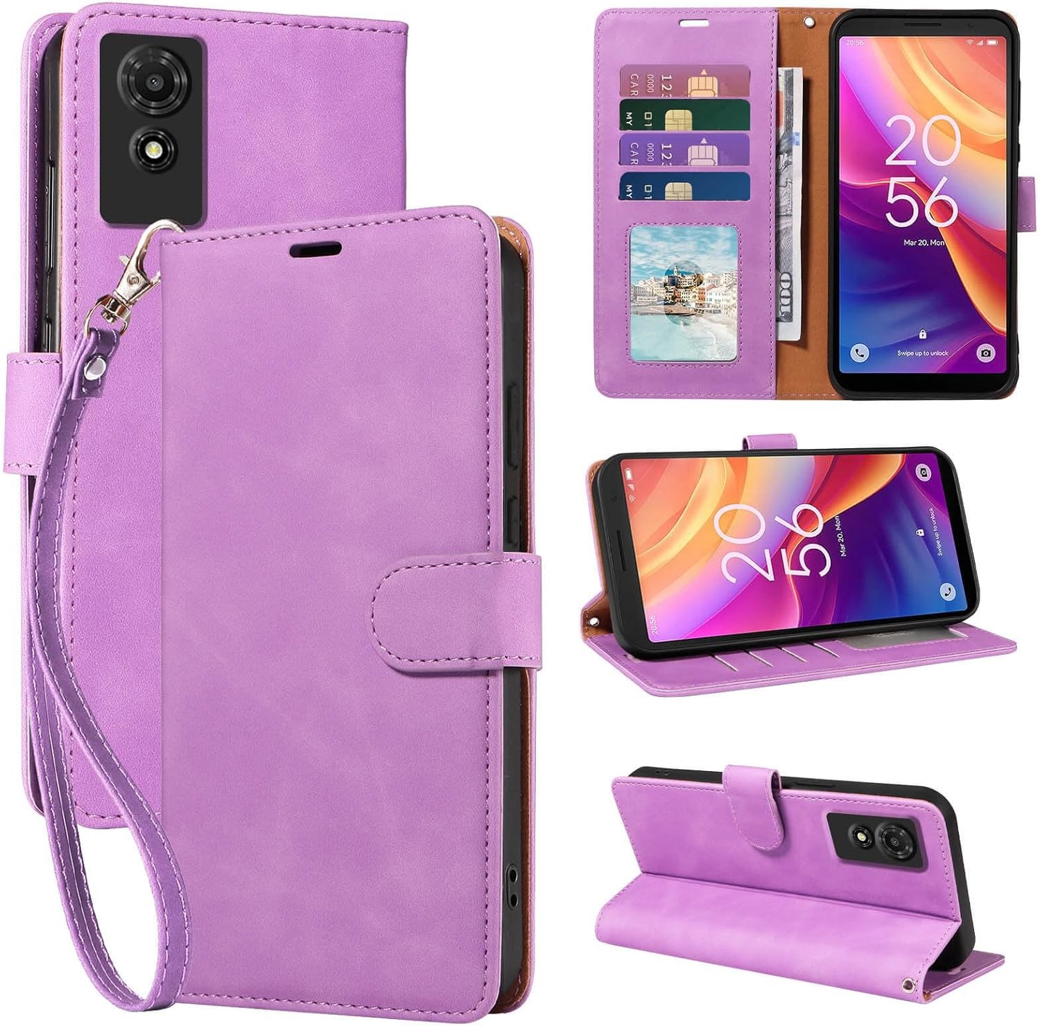 Compatible with TCL 501 Phone Case â Leather Wallet Cover with Magnetic Closure, Card Slot & Shockproof Protection, Light Purple