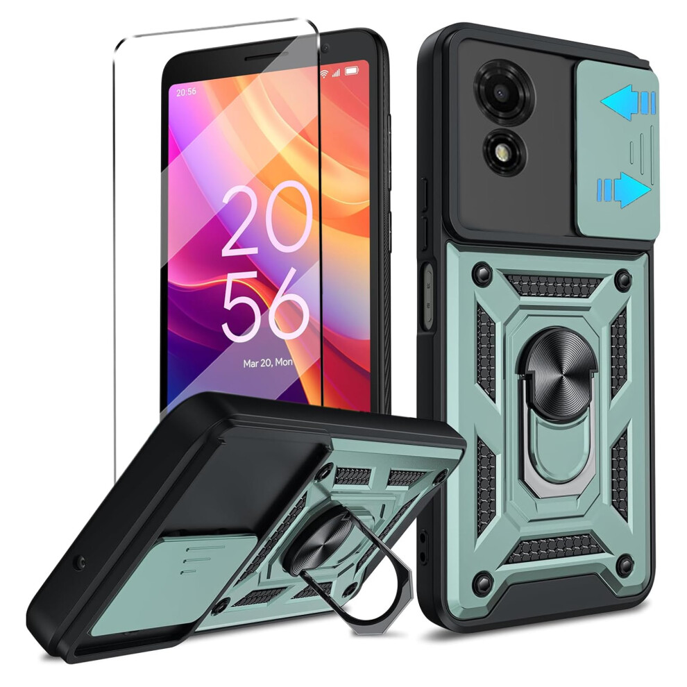 2-in-1 Case for TCL 501 Tempered Glass with Slide Camera Protection Cover Screen Protector Phone Case Heavy Duty Military Grade Protective Cover phone