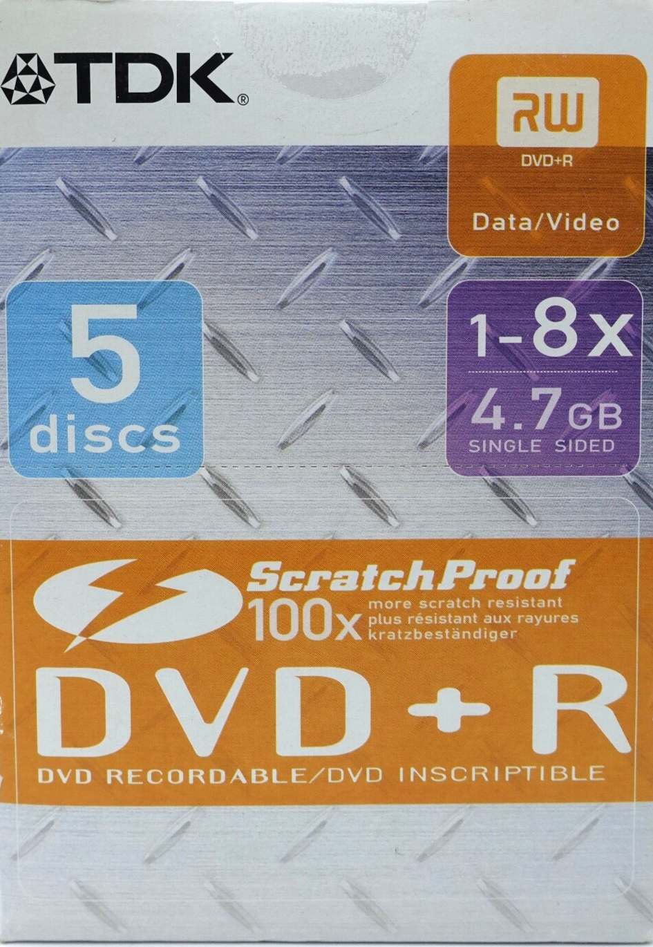 TDK DVD + R Blank Discs 4.7Gb 8x ScratchProof 5 Pack Video Box