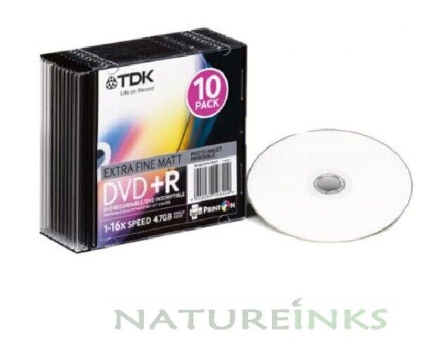 CLEARANCE - 10 x TDK Printable Blank DVD+R 16x 4.7GB discs 120 mins Jewel case