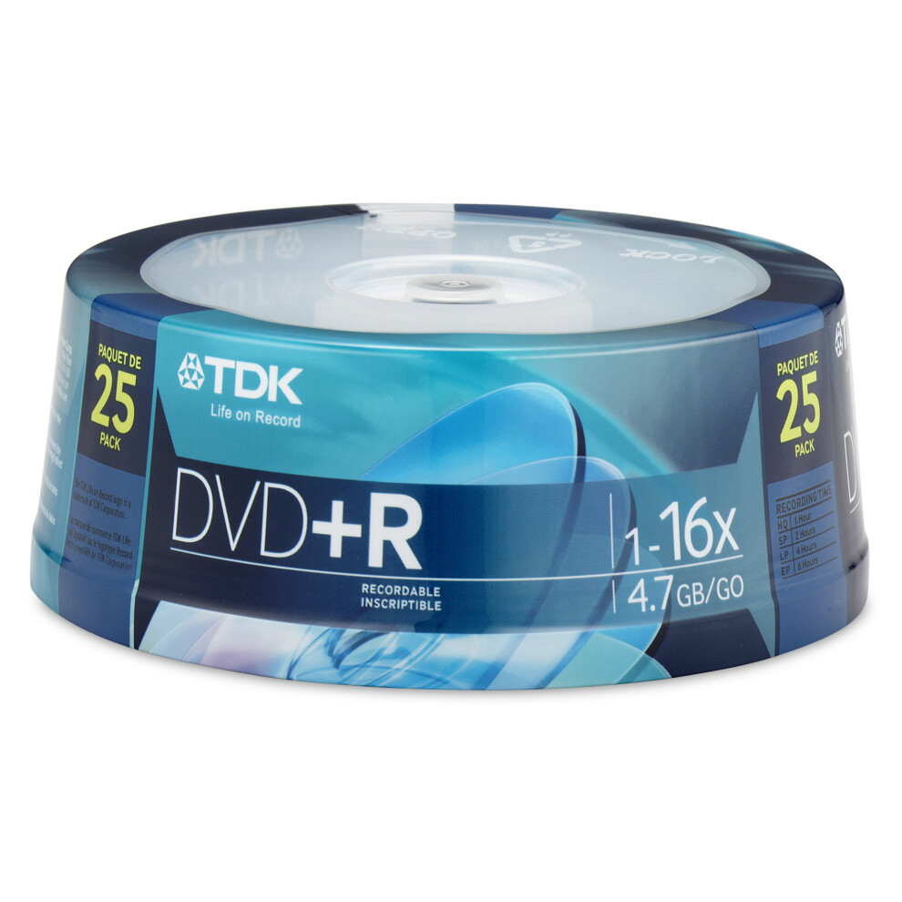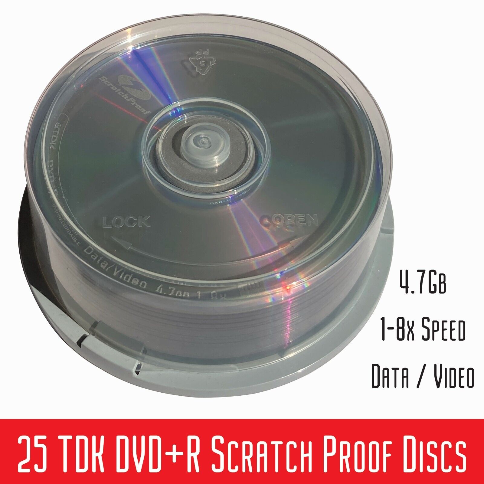 25 TDK DVD+R Blank Dics Scratch Proof 4.7GB 1-8x Media For Data Video in Spindle