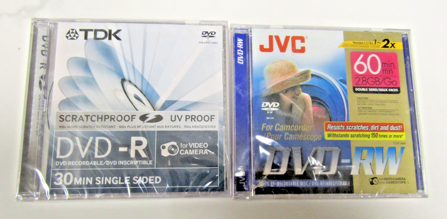 TDK 8cm Camcorder Disc DVD-R 30 Min Single Sided Scratchproof +JVC DVD-RW 60 Min