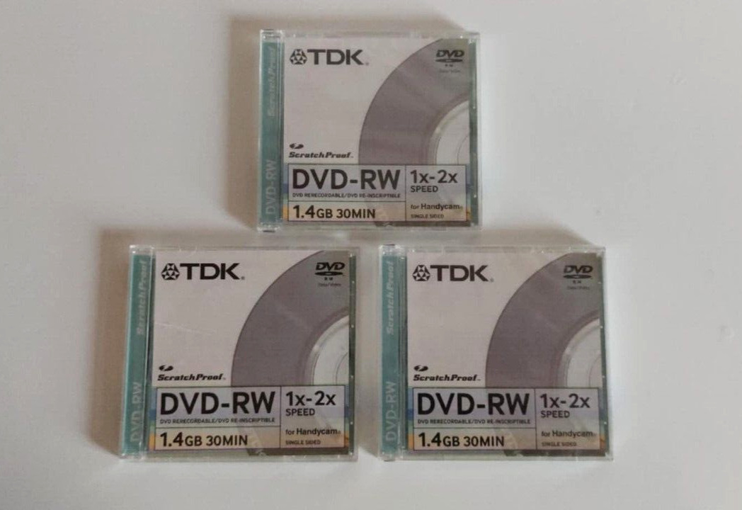 3 x TDK DVD-RW Scratch Proof, 30min 1.4GB Single Sided For Video Camera Handycam
