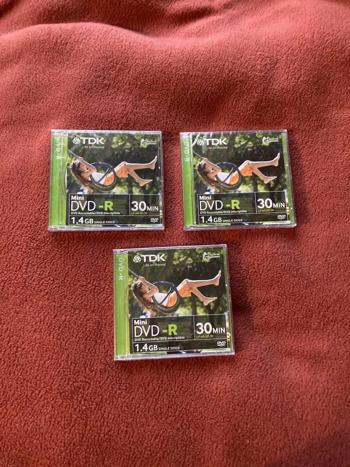 3 x TDK Mini DVD-R 30min 1.4 GB 8cm Recordable Single Sided Disc for Camcorder