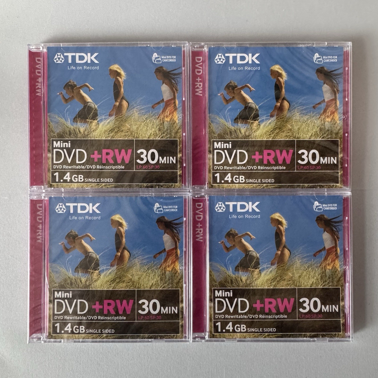 4x TDK Mini DVD+RW 30 min 1.4GB 8cm DVD Rewritable Single Sided Camcorder Disc
