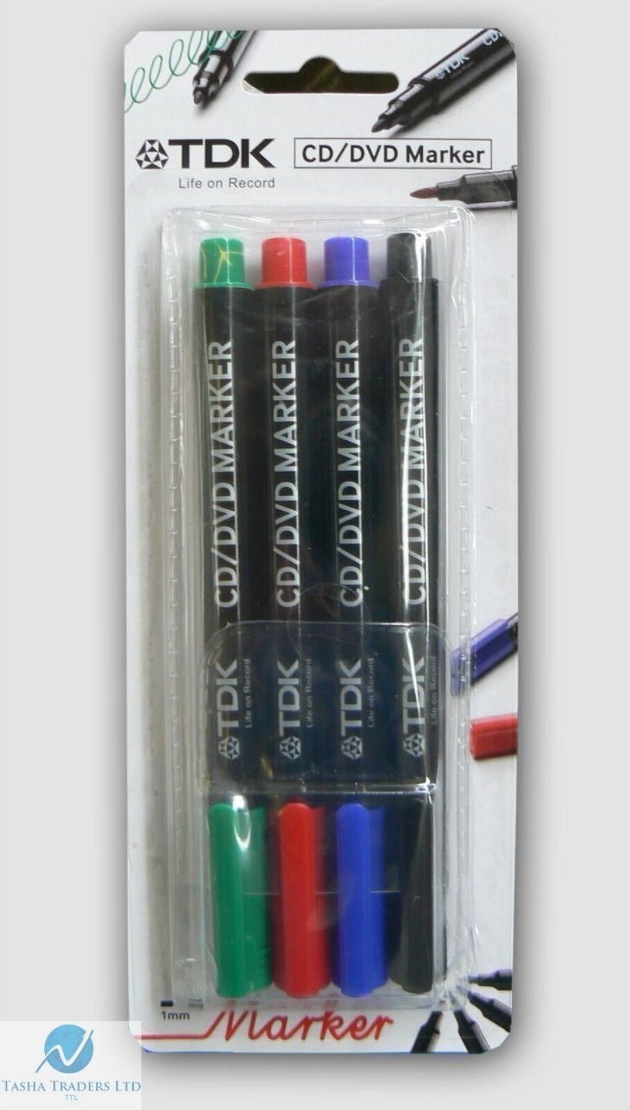 TDK CD/DVD 4 Colors Fine Liner High Quality Marker Pens Red, Green, Black, Blue