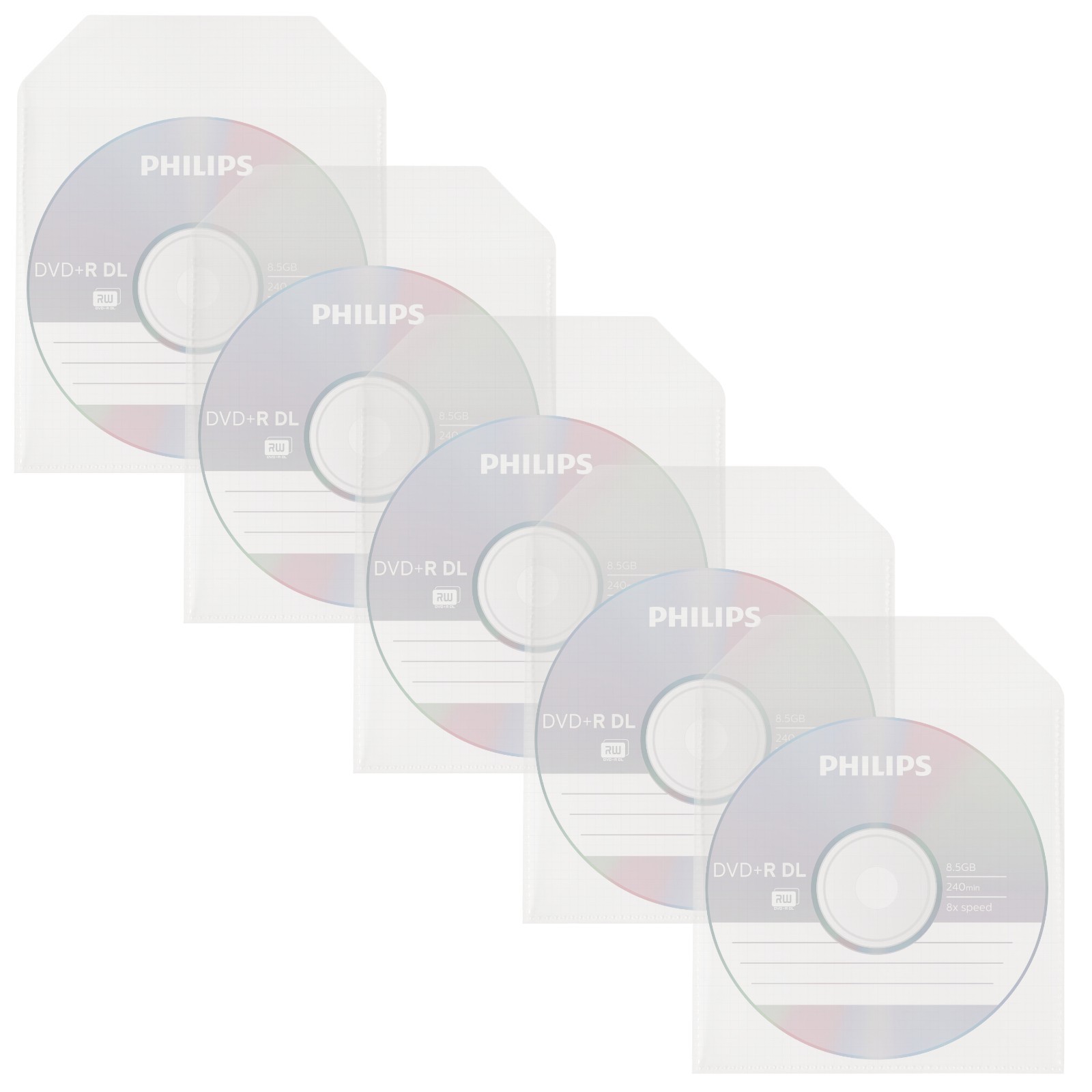 5 Philips Dual Layer DVD+R Double DL 240min 8.5GB 8X Speed Blank Disc in Sleeves