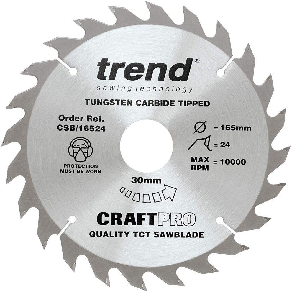 Trend CSB/16524 Craft Pro Trimming Crosscut TCT Blade Ideal for Einhell TE-CS165 Circular Saws, 165mm x 24 Teeth x 30mm Bore, Tungsten Carbide Tipped