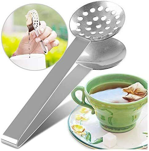2Pcs Tea Bag Squeezer, Stainless Steel Tea Spoon Tea Bag Holder for Gripping Loo