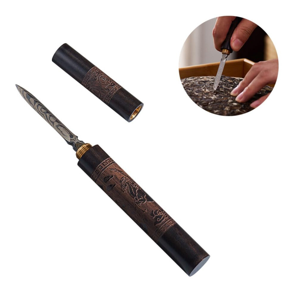 Tea Knife Made of Sandalwood, Retro Pu Tea Needle, Handmade Stainless Steel Tea Lever for Compressed Tea Cakes and Tea Cones